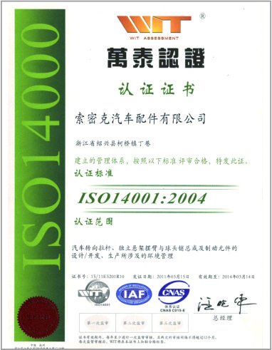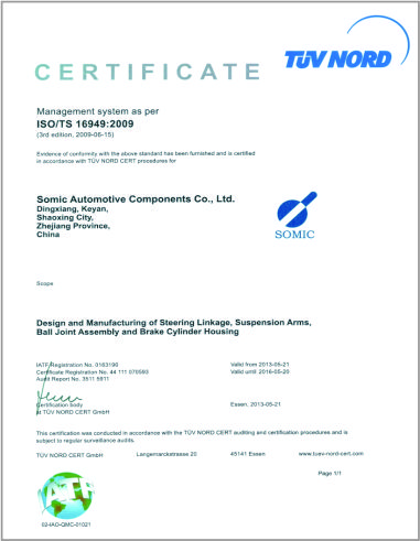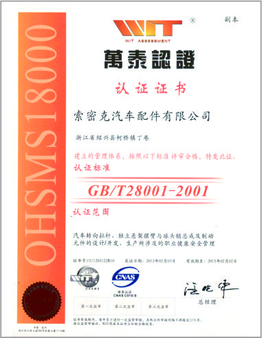 公司已先后通過IATF16949質量管理體系認證、ISO/14001環(huán)境管理體系認證和OHSAS18001職業(yè)健康安全管理體系認證。是“國家高新技術企業(yè)”“行業(yè)龍頭企業(yè)”和“全國百家優(yōu)秀汽車零部件供應商”。